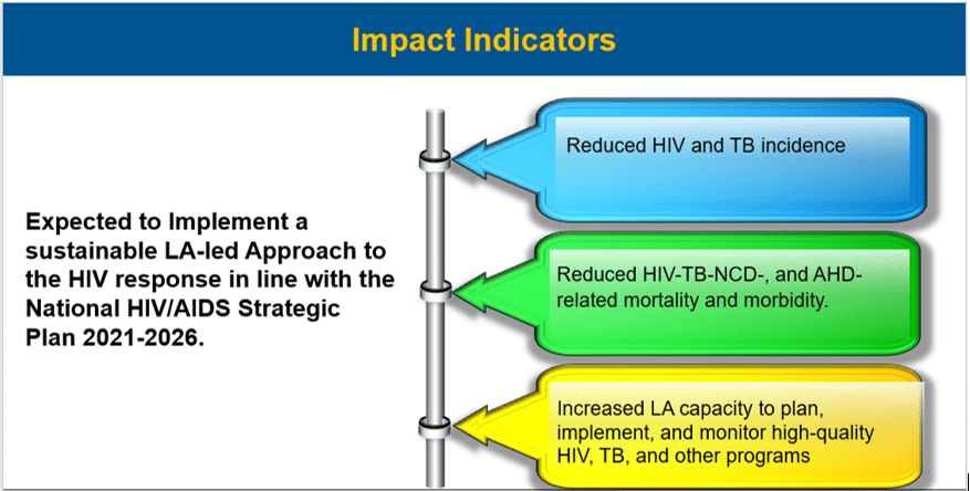Achieve the 95-95-95 UNAIDS targets through improved and resilient health systems and sustained Government of Uganda (GoU) capacity to plan, implement, and monitor high-quality programs to address HIV, TB, and other PH threats.